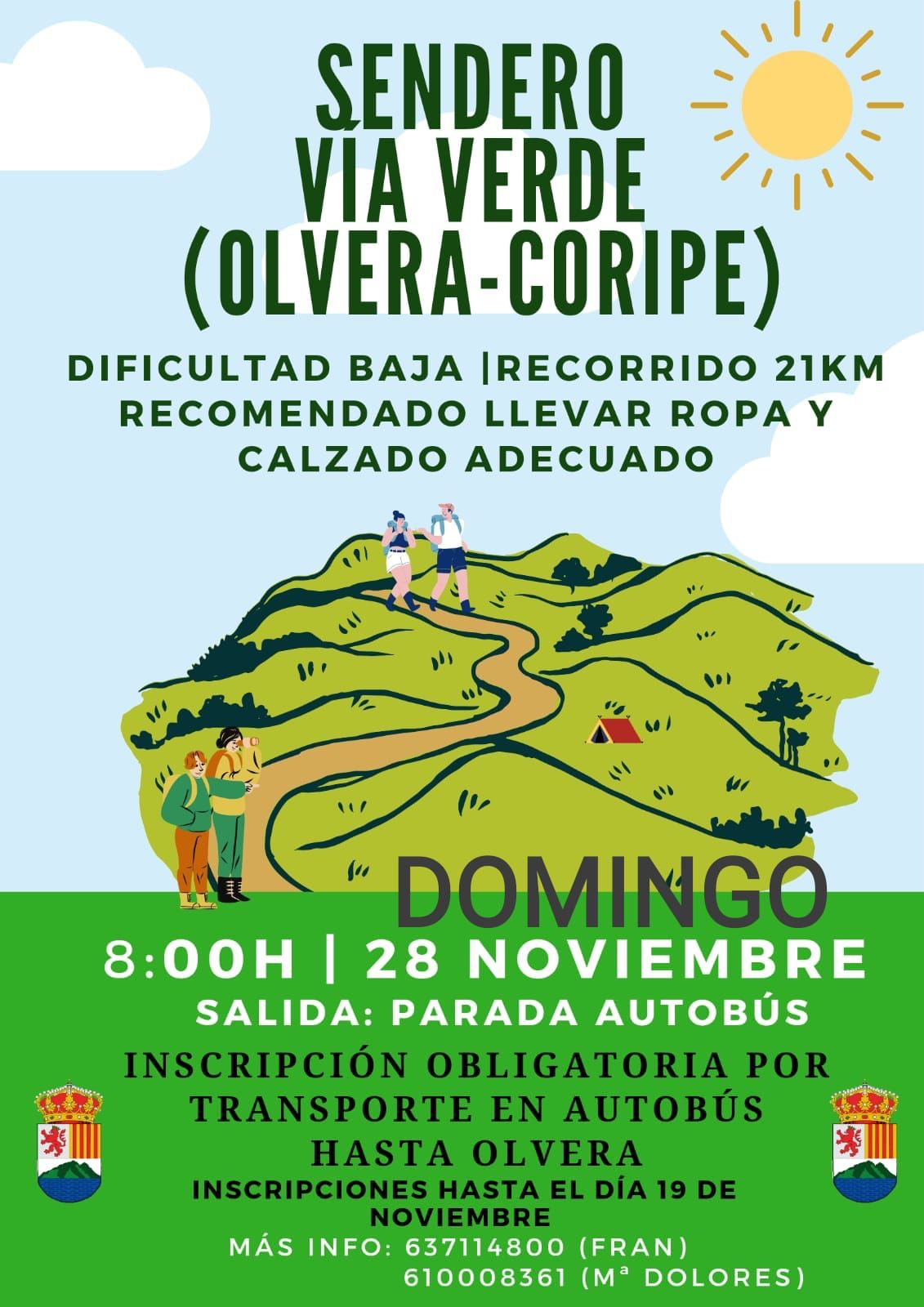El próximo 28 de Noviembre (cambio de fechas) se realizará el Sendero Vía Verde (Olvera-Coripe) de dificultad baja y una longitud de 21 Km.